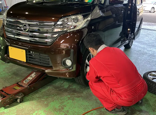 車検と一緒にスタッドレスタイヤまたはノーマルタイヤへの履き替えをすると無料になります。ご希望の方はお気軽にお申し付けください。