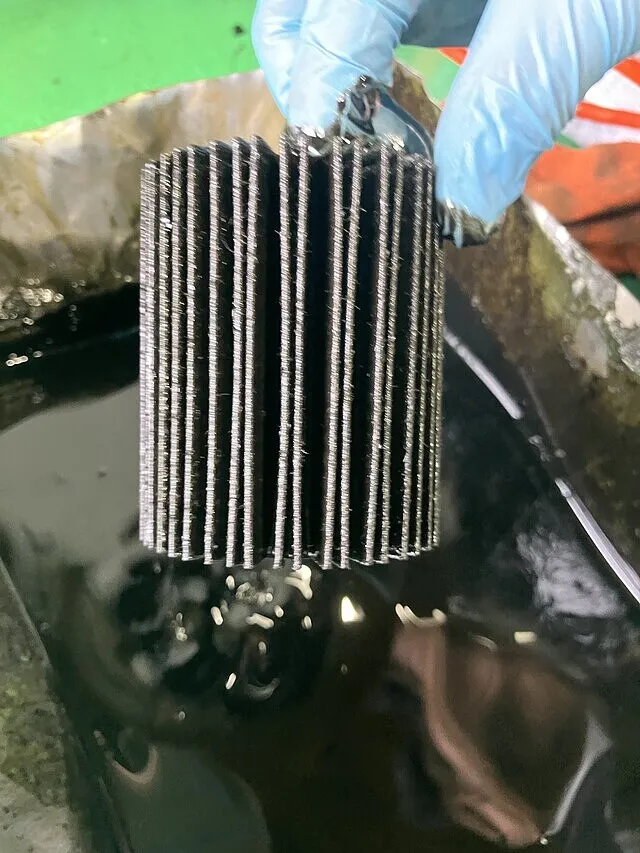 エンジンオイルを完全に抜き切ったら、入口にあるエレメントを新しい物に交換致します。