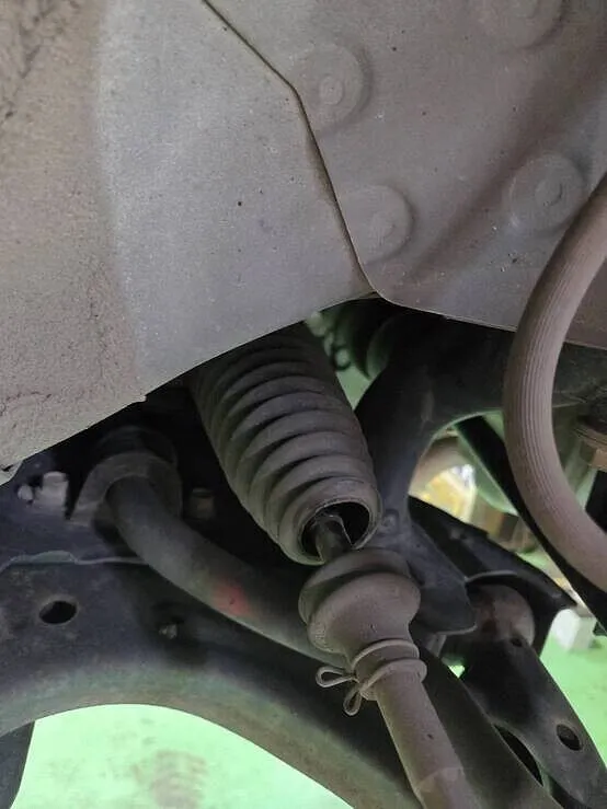 車の下に潜り込んでみると、普段はあまり目にしないラックブーツが見えてきます。